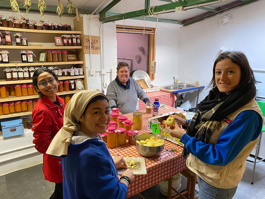 El sábado 22 participamos en los diversos talleres (panadería, cerámica, mosaico, mermelada, carpintería, huerto, albañilería, biblioteca, guardería, preparación de las comidas, entre otros tantos talleres que se desarrollan…).